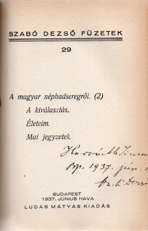 5 szám egybekötve.A 29. szám Szabó Dezső (1879-1945) által dedikált példány.