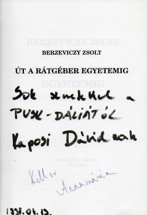A PVSK-Dália által ajándékozott példány Keller Annamária (1977-) aláírásával.