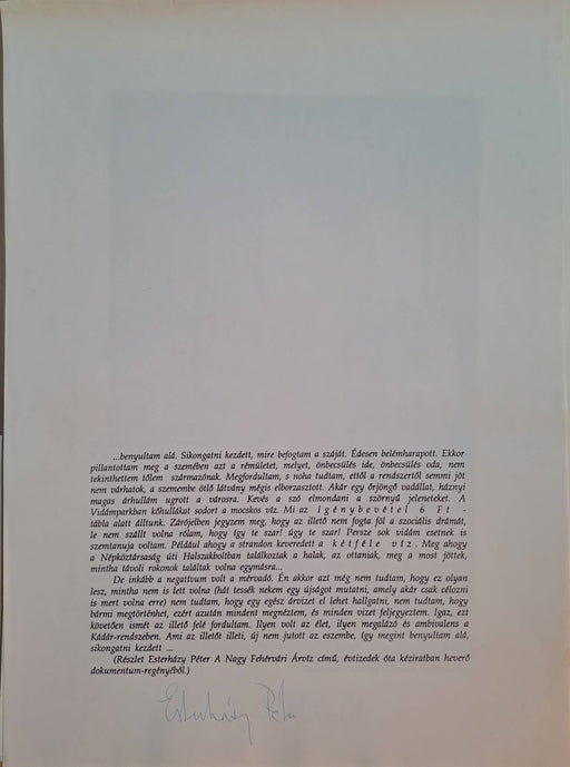 Esterházy Péter és Hegedűs 2 László által aláírt példány. 45 db aláírt nyomattal, egy Esterházy Péter aláírását tartalmazó magyar-angol szöveglappa...