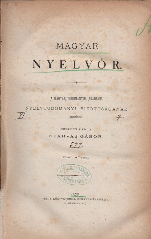 Magyar Nyelvőr 51 kötete 1872-1983