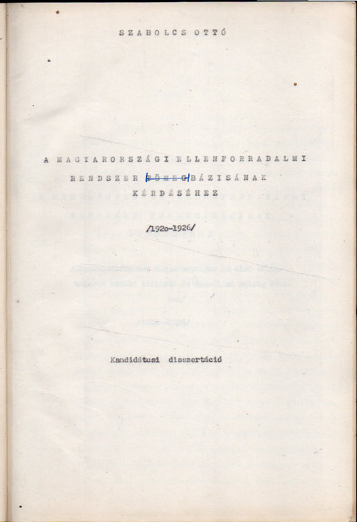 A magyarországi ellenforradalmi rendszer bázisának kérdéséhez (1920-1926)